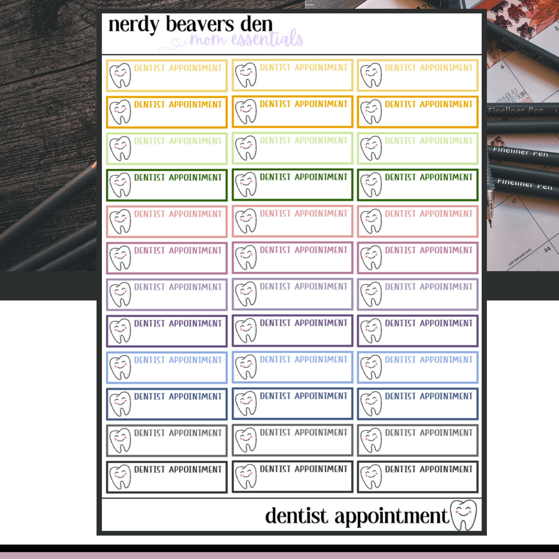 Calling all moms! Have a dentist appointment you need to track? We got you. These cute stickers will fit in your monthly or hourly sections to write the time, date and name.