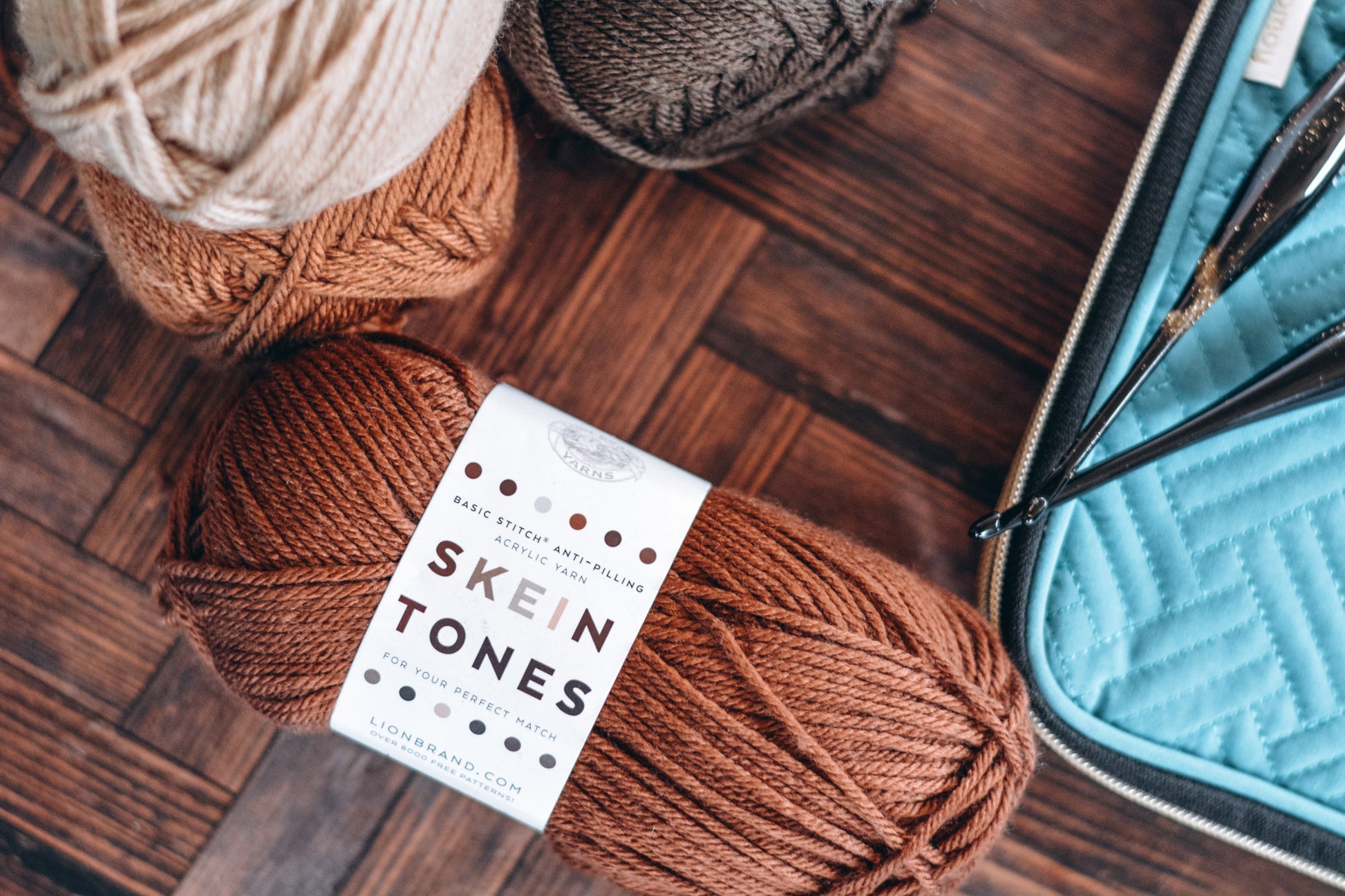 Product Details: Brand of yarn is Lion Brand Yarns and are Skein Tones yarn which is 100% Acrylic, machine washable, gentle cycle, tumble dry.